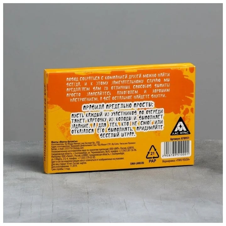 Купить игра для компании "фанты буханты" 20 карт от 100 руб. с доставкой до пункта выдачи в Называевске. Интернет магазин ДекаМаркет. Оплата при получении.